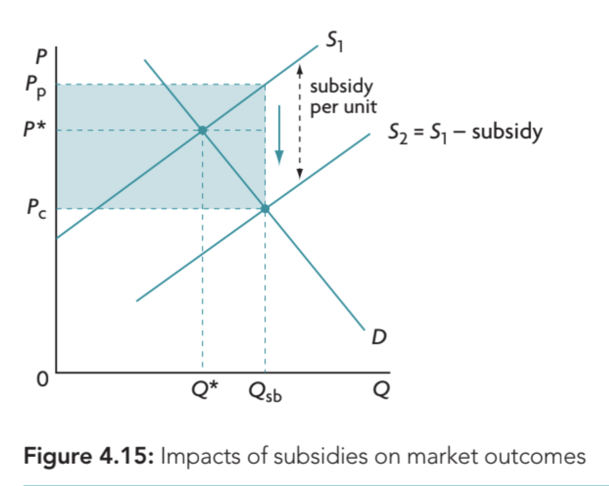 Subsidy - payment per unit of output from the government to a producer in order to lower costs or increase output.