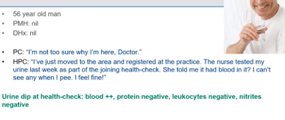Other urinary sx – dysuria, anything suggest UTI but leukocytes and nitrites -ve