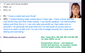 no sign of infection, obs normal, no PMH – still need urgent ix - CT KUB in 24hr – ambulatory care