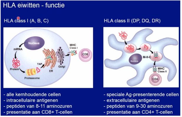 HLA heeft geen dominantie: alle HLA’s komen op opp van cel tot expressie = co-dominantie