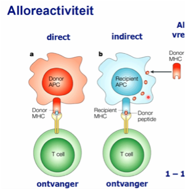 Hoe meer mismatch in HLA hoe krachtiger de alloreactiviteit van de T-cellen–> grotere kans op directe en omgekeerde afstoting