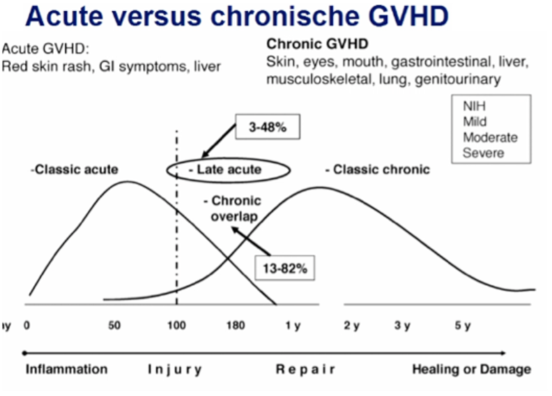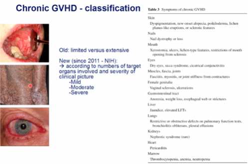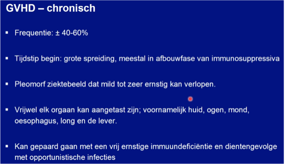 Bij chronische GVHD veel celtypen betrokken: vergelijkbaar met AIZ–> dysregulatie van het IS waarbij meerdere spelers betrokken zijn