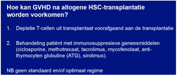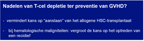 –> Significante afname acute GVHD en zeer significante afname chronische GVHD vergeleken met conventionele therapie zonder meer relapse of andere problematiek