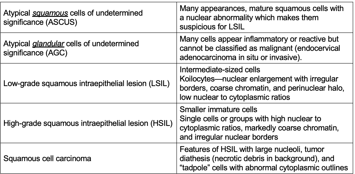 * This is why it is so important to get cells from the squamous epithelium (exocervix) and the columnar epithelium (endocervix).