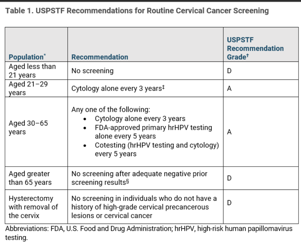 ANY previous abnormal cytology screening or HIV or DES exposure in utero -> yearly screening