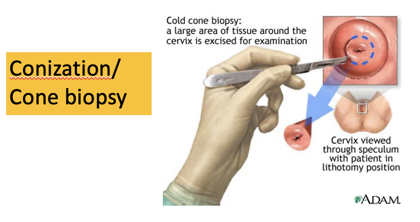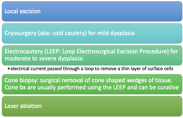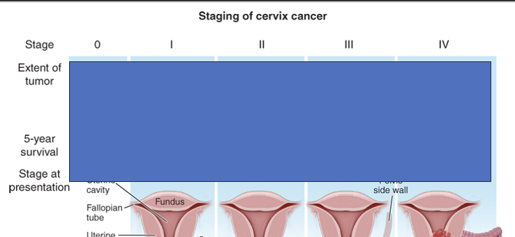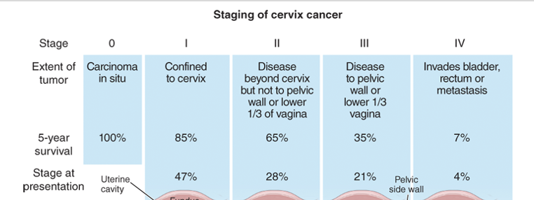 * Most common presentation of later stage cancer is a visible lesion on the cervix