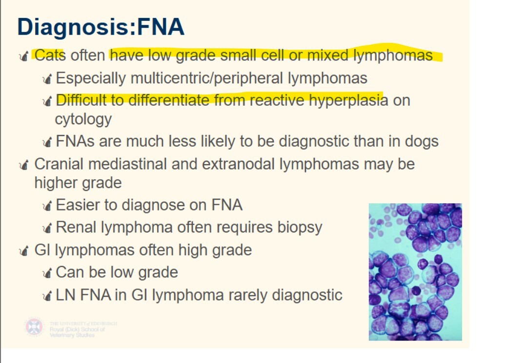 FNA is less diagnostic in feline lymphomas than canine. why?
