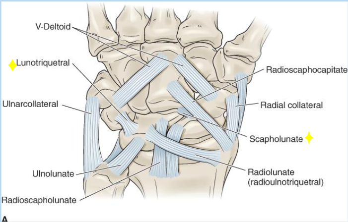 Maintains lunate-triquetral stability (star by this one on the slide for some reason i guess it’s important)