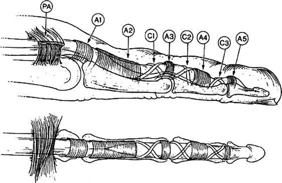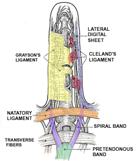 pretendinous band, spiral band, lateral digital sheet, and Grayson’s ligament