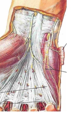 The transverse ligament of the palmar aponeurosis also not involved.