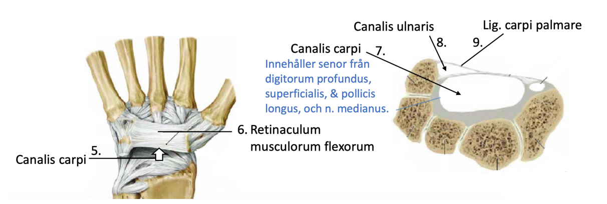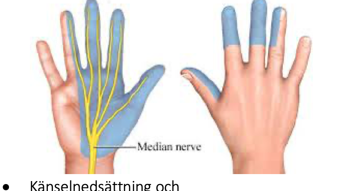 P.g.a. trängsel i karpaltunneln komprimeras n. medianus.
