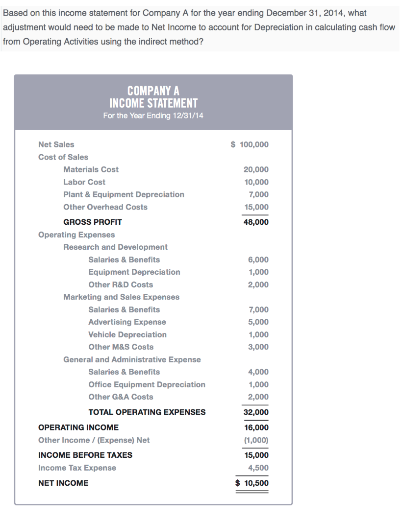 This is the correct answer! The adjustment to Net Income is an increase of $10,000, because $10,000 of Depreciation expense was recognized during the year. By adding this amount back to Net Income, we eliminate the impact of this non-cash transaction.