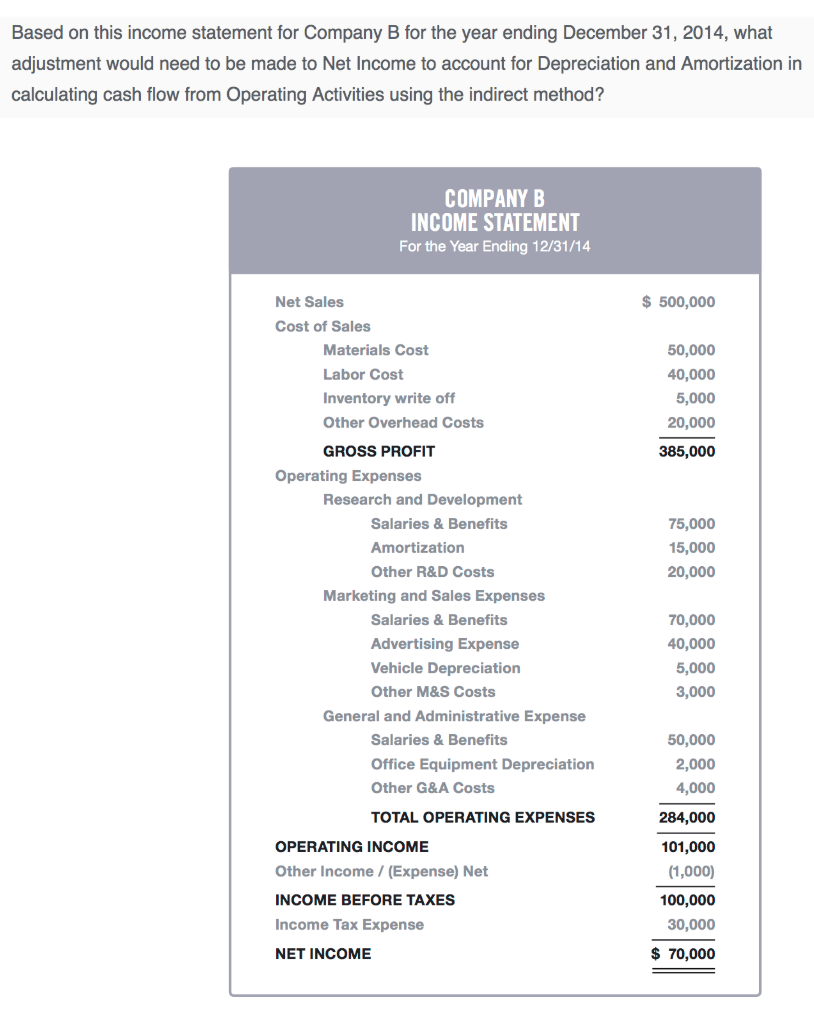 This is the correct answer! The adjustment to Net Income is an increase of $22,000, because $22,000 of Depreciation and Amortization expense was recognized during the year. By adding this amount back to Net Income, we eliminate the impact of this non-cash transaction.