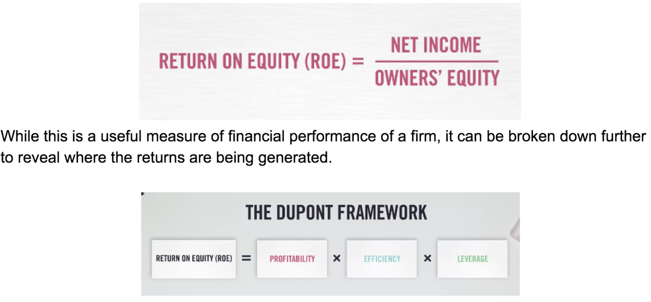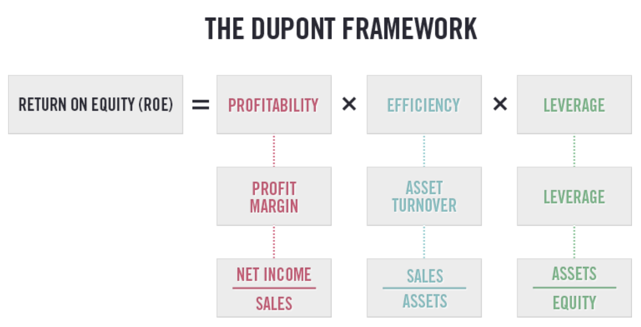 The DuPont Framework expands the ROE formula to consist of three measures:
