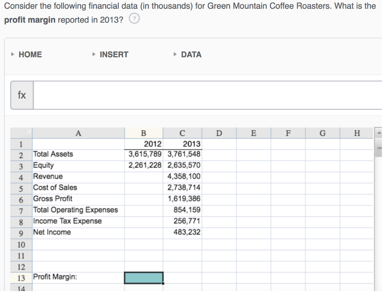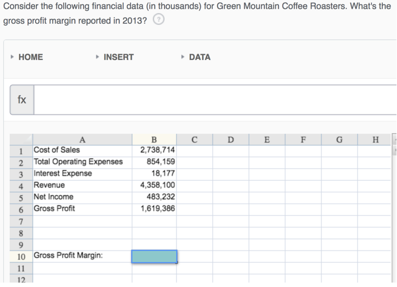 Suppose the following were the gross profit margins for Green Mountain Coffee Roasters (GMCR) from 2011 through 2013.