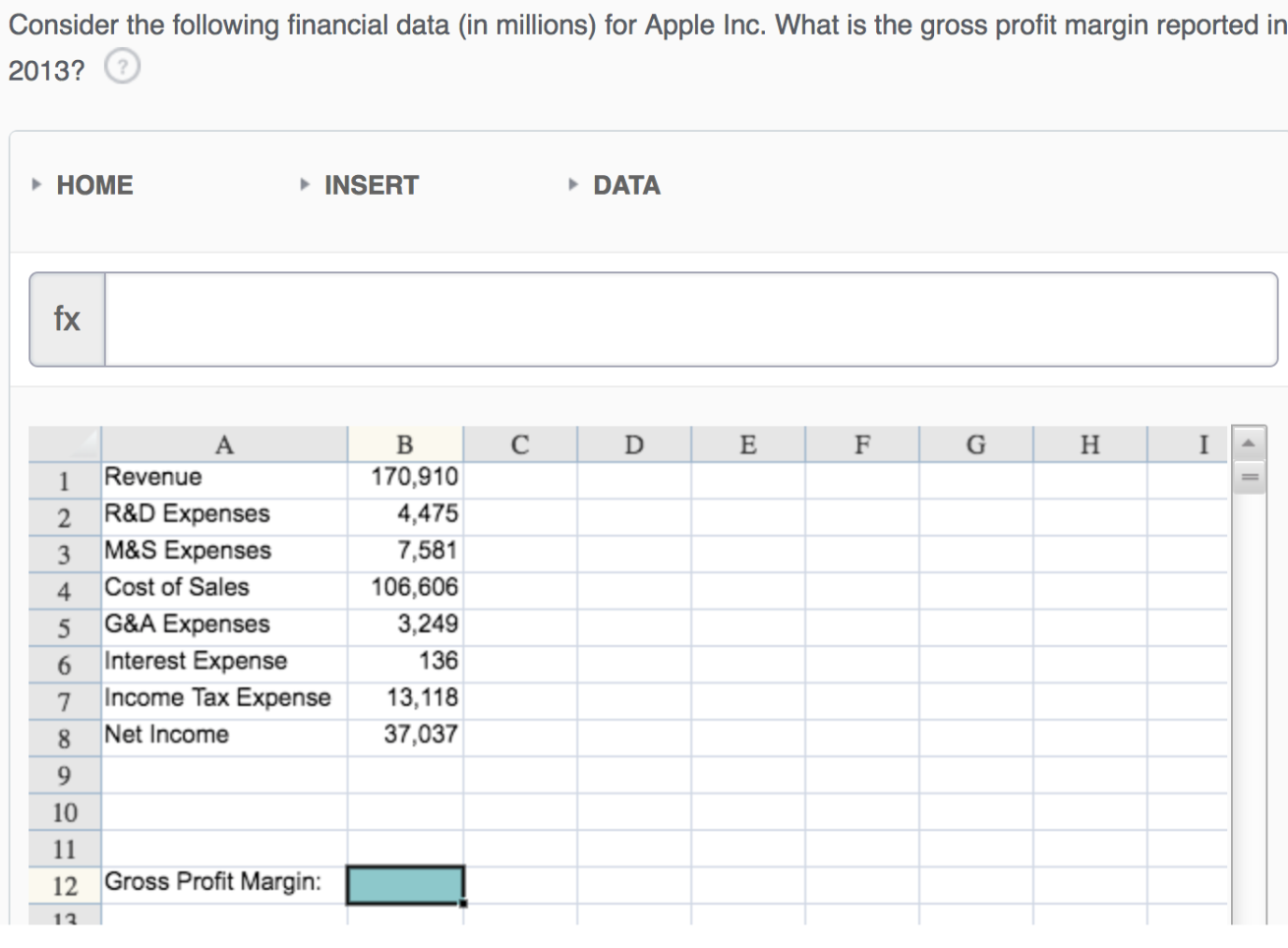 The trick is to recognize that the Revenue is equal to the Cost of Sales plus the Gross Profit (170,910 = 106,606 + 64,304). As we have learned, Revenue minus Cost of Sales equals Gross Profit so it follows that Cost of Sales plus Gross Profit equals Revenue.