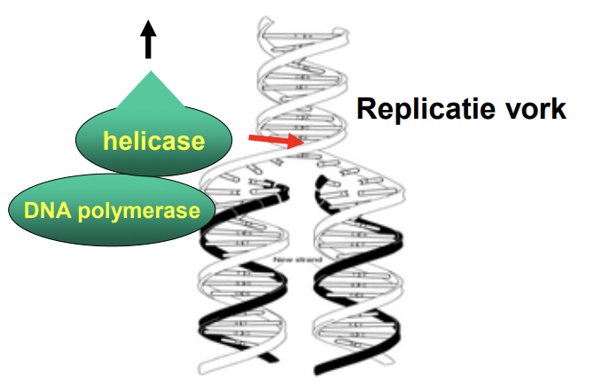 Helicase opent de DNA helix verder aan de voorkant van een replicatievork
