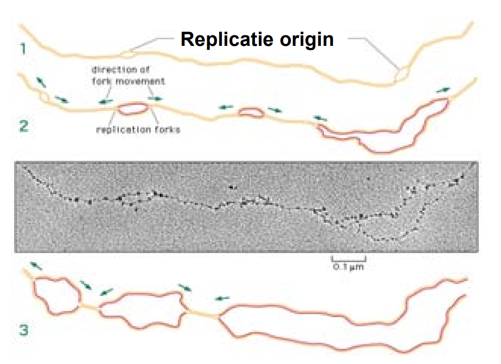 DNA replicatie verloopt vanaf de replicatie origine in beide richtingen