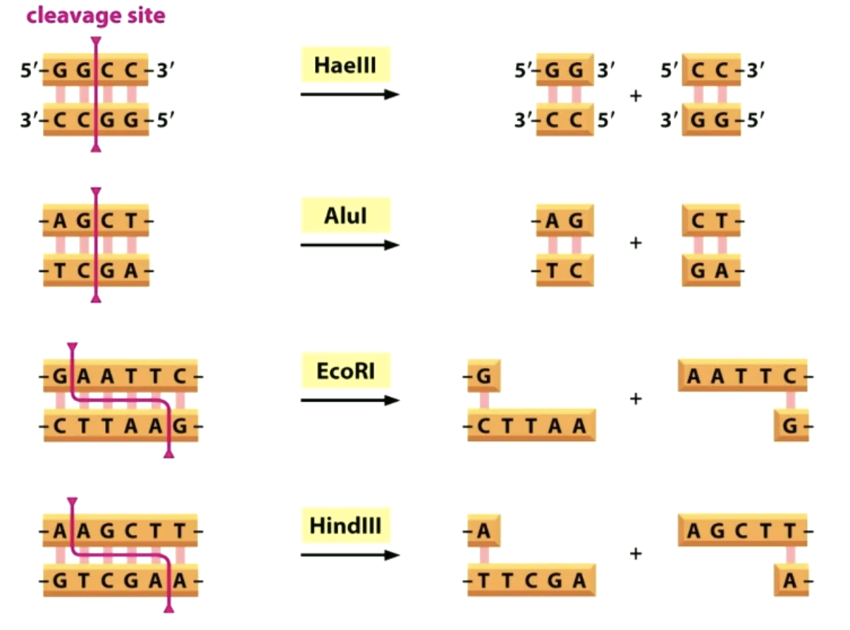 Restrictie enzymen herkennen bepaalde DNA sequenties en knippen DNA alleen bij die bepaalde base volgorde.