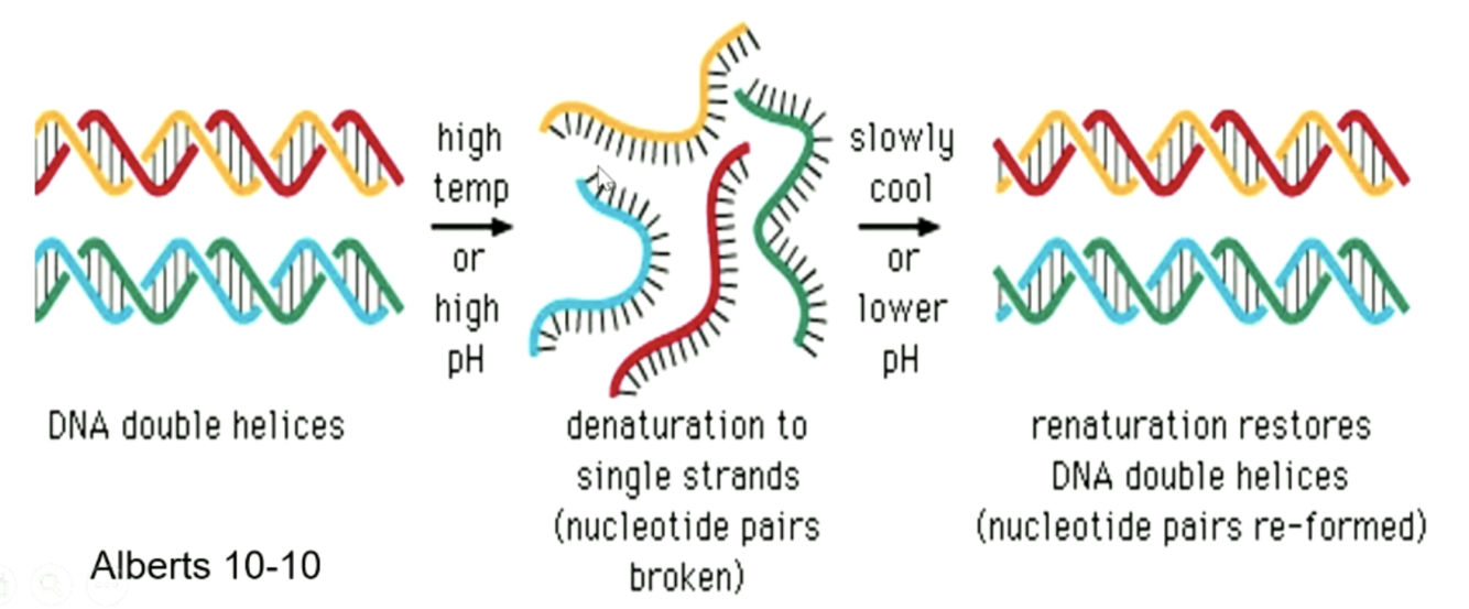 een hoge temperatuur, de complementaire strengen weer met elkaar zullen binden als de temperatuur weer daalt.