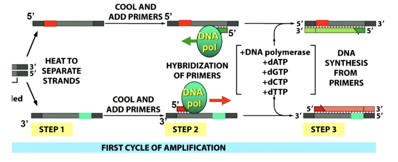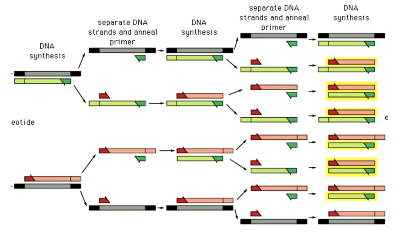 Een specifiek DNA fragment wordt dan vermenigvuldigd, waardoor het makkelijker/mogelijk wordt gemaakt om het te detecteren/analyseren