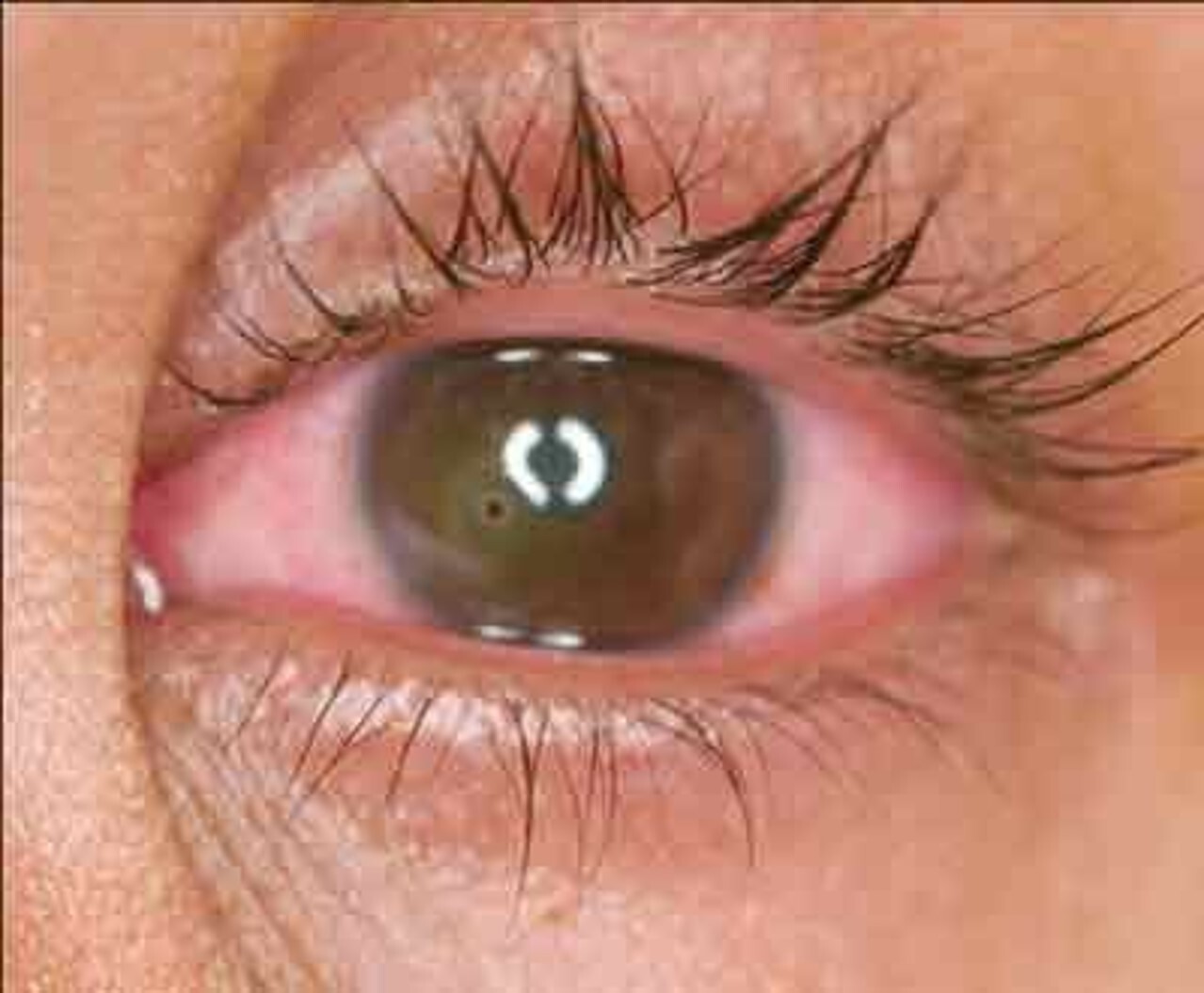 * Have the patient’s eye turned upwards and touch the inside of the lower eyelid.