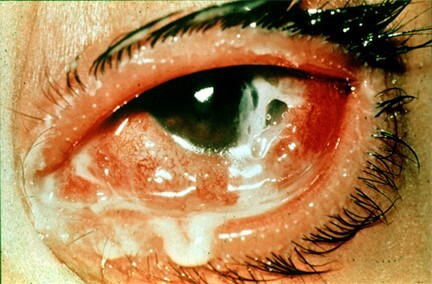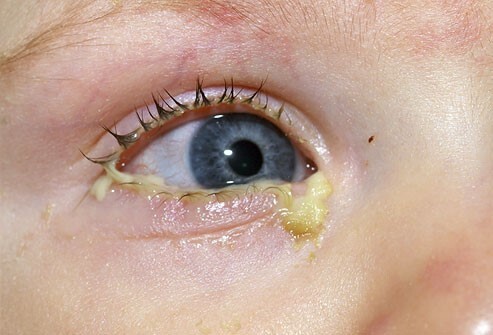 Copious amount of purulent discharge, with no visual blurring, and mild discomfort is associated with the eye is likely to be what?