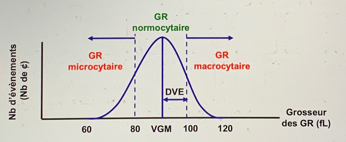 Le VGM est la valeur moyenne du volume de chaque GR établie à partir d’une courbe de distribution de ceux-ci