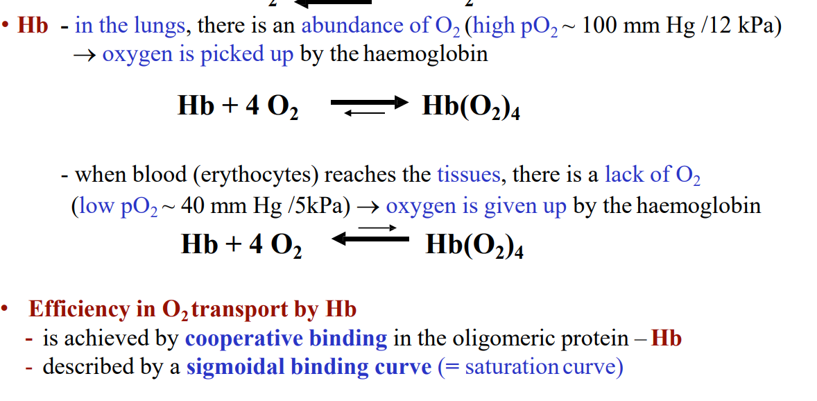 Function: oxygen transport from lungs via blood to tissues → transport via erythrocytes