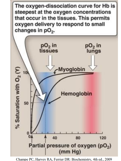 - reason: solubility of O2 in blood/plasma very low, diffusion very slow