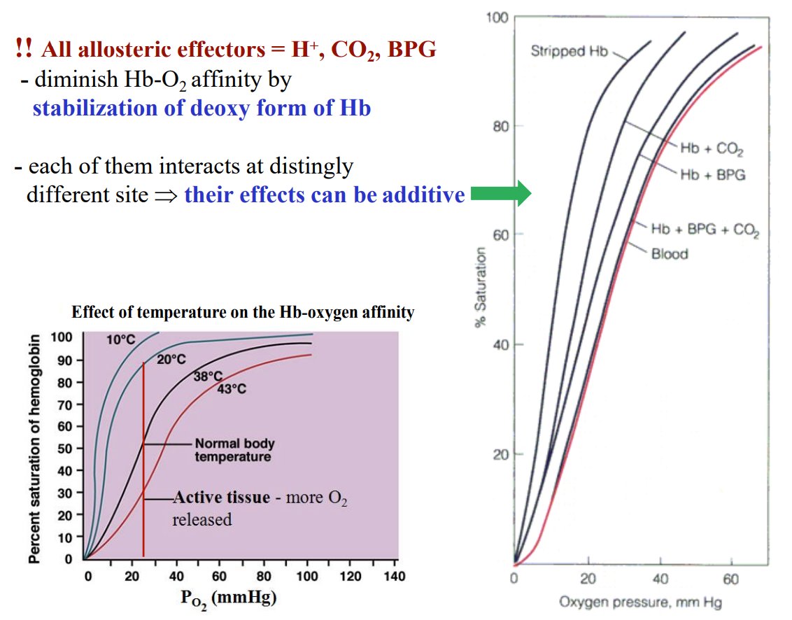 how much do the allosteric factors - h. co, bpg affect oxygen affinity