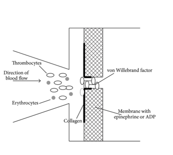 (vWF, fibrinogen, fibronectin, thrombospondin, P-selectin, GPIIb/IIIa)