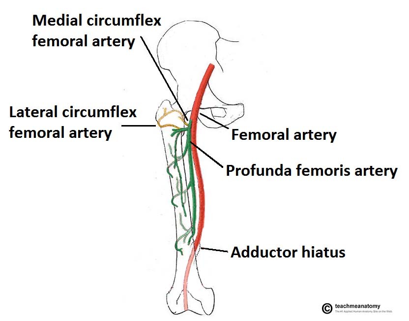 Supplied by profunda femoris- medial and lateral circumflex arteries anastomose, forming a circle around the femur