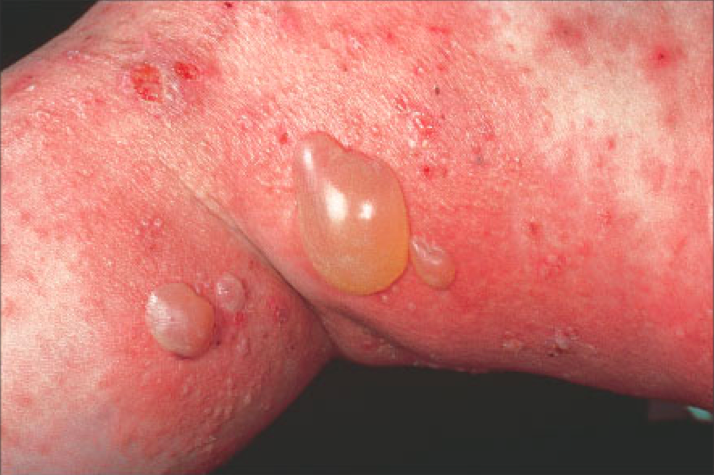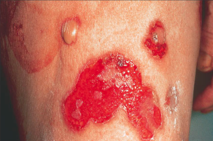 Blisters are smaller and flaccid meaning that they rupture easily exposing a red raw surface underneath