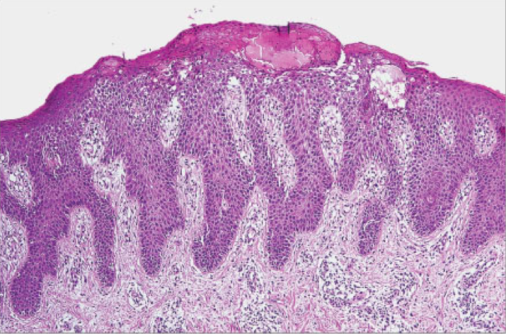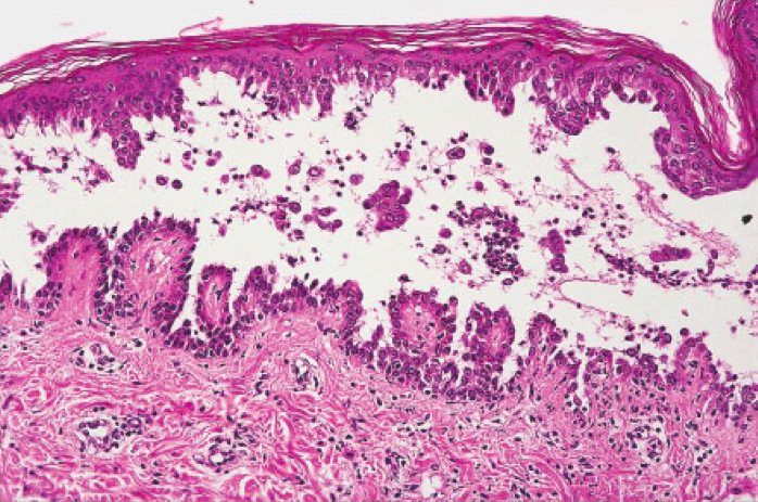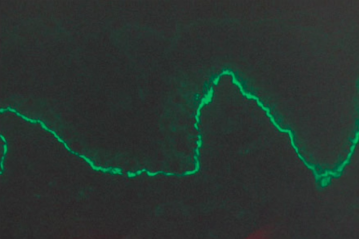 NOTE: this can occur due to a lot of dermatological conditions so immunofluorescence is needed to identify where the immune-mediated attack is taking place