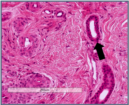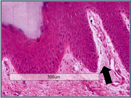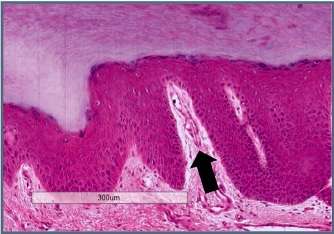 d. Loose connective tissue (because it’s the papilary layer, very cellular)