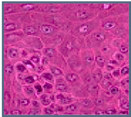 b. Stratum spinosum (polygonal cells, spines between adjacent cells)