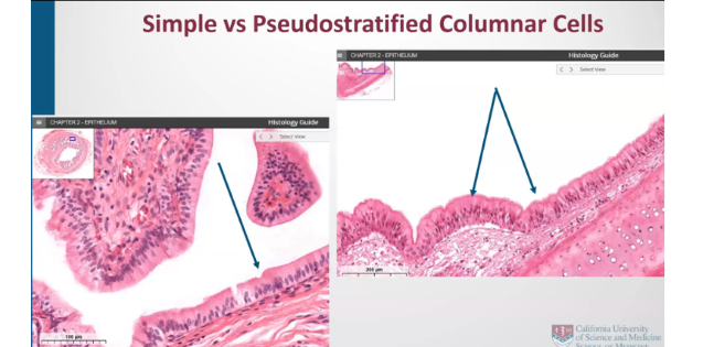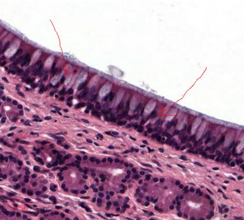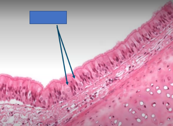 what specific structures are being pointed to within the pseudostratified columnar epithelium