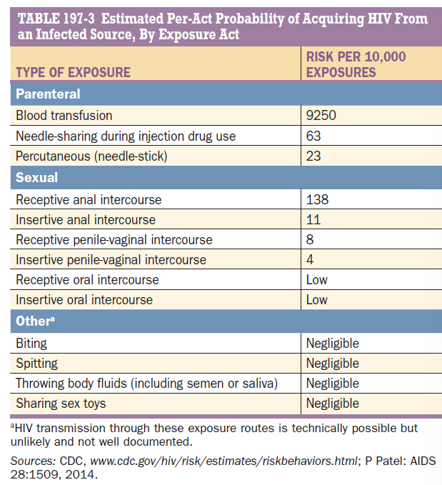 settings (sexual, transfusion,