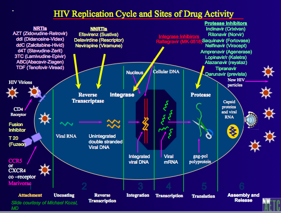 HIV Replication Cycle and Sites of Drug Activity