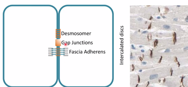 Vad hålls hjärtceller ihop av och av vad består dessa?