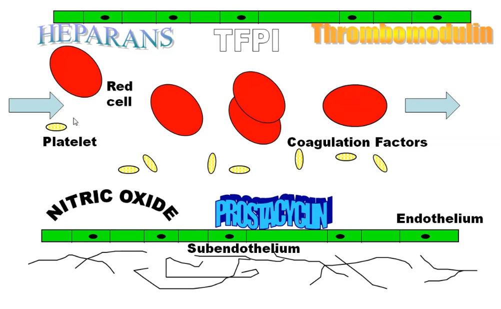 What substances does the endothelium produce to keep blood liquid?