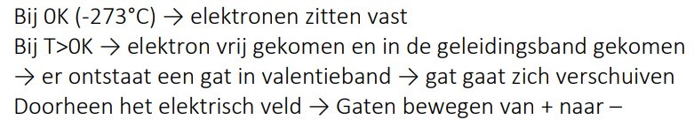 als je P-Si samenvoegt met N-Si dan gaan de elektronen in de gaten vallen en zijn er in een bepaald deel geen elektronen en gaten meer = uitputtingszone of sperlaag