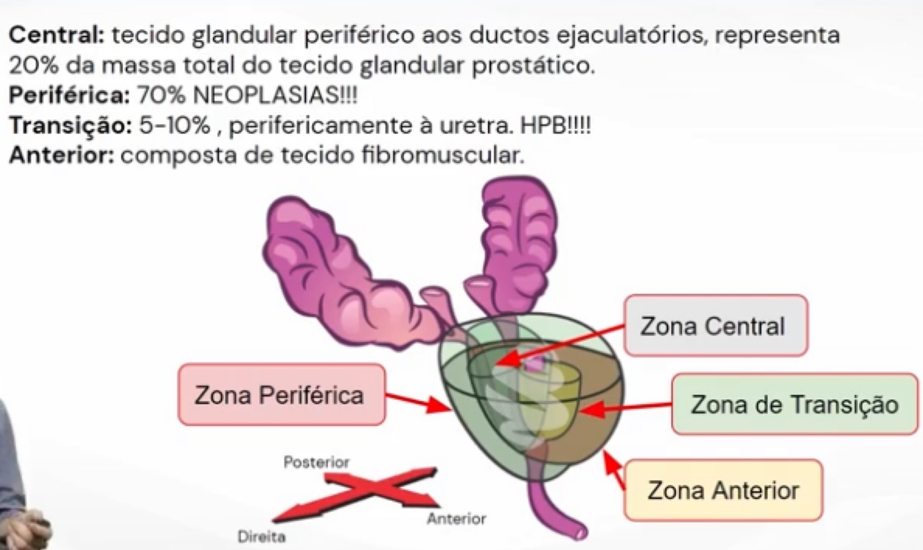 Zonas anatômicas da próstata e suas correspondências patológicas: