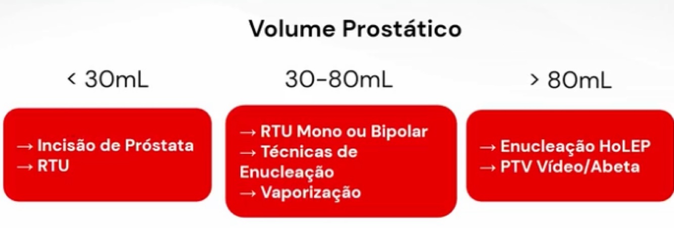 Quando escolher cada conduta cirúrgica de acordo com o volume da próstata?