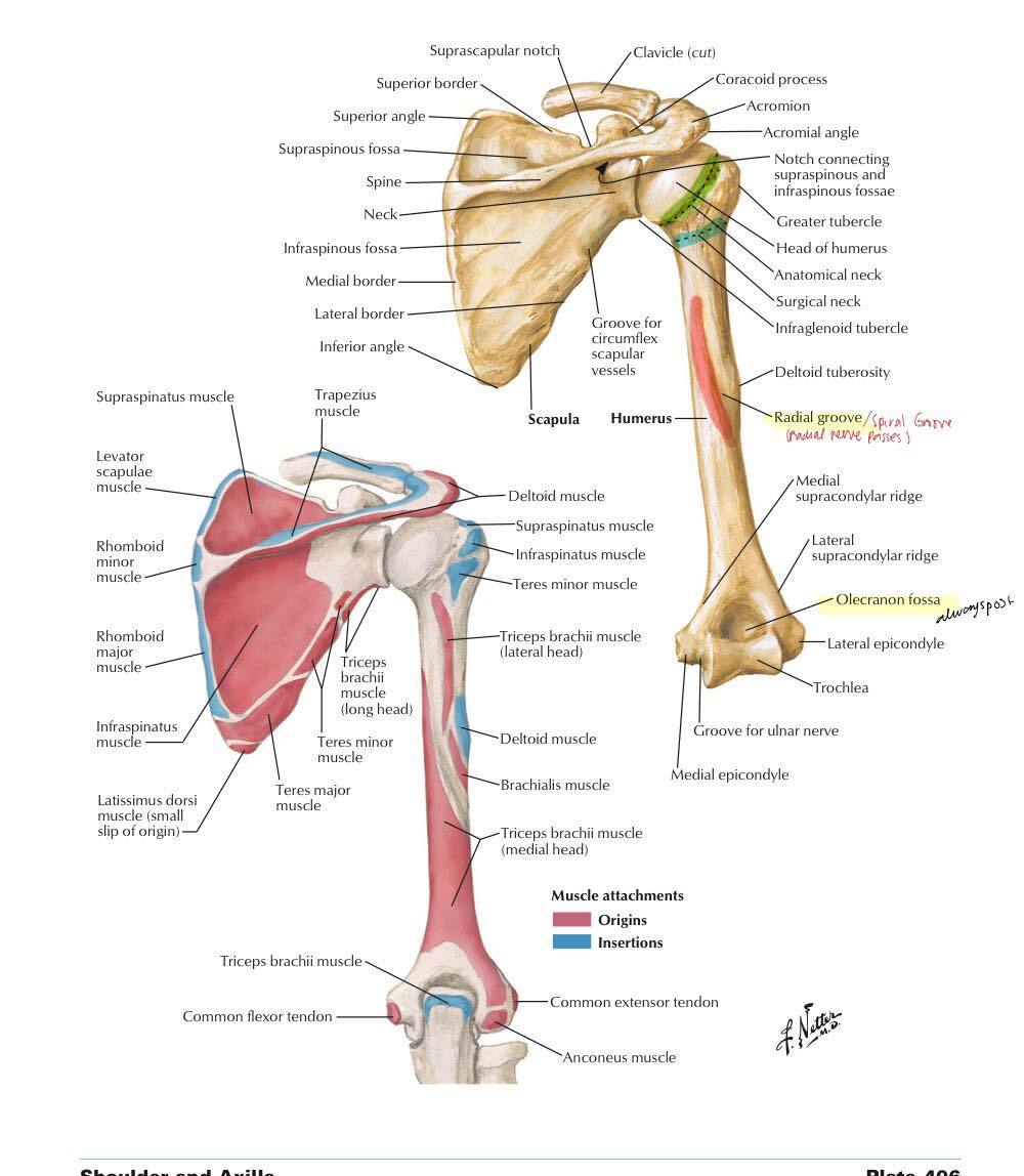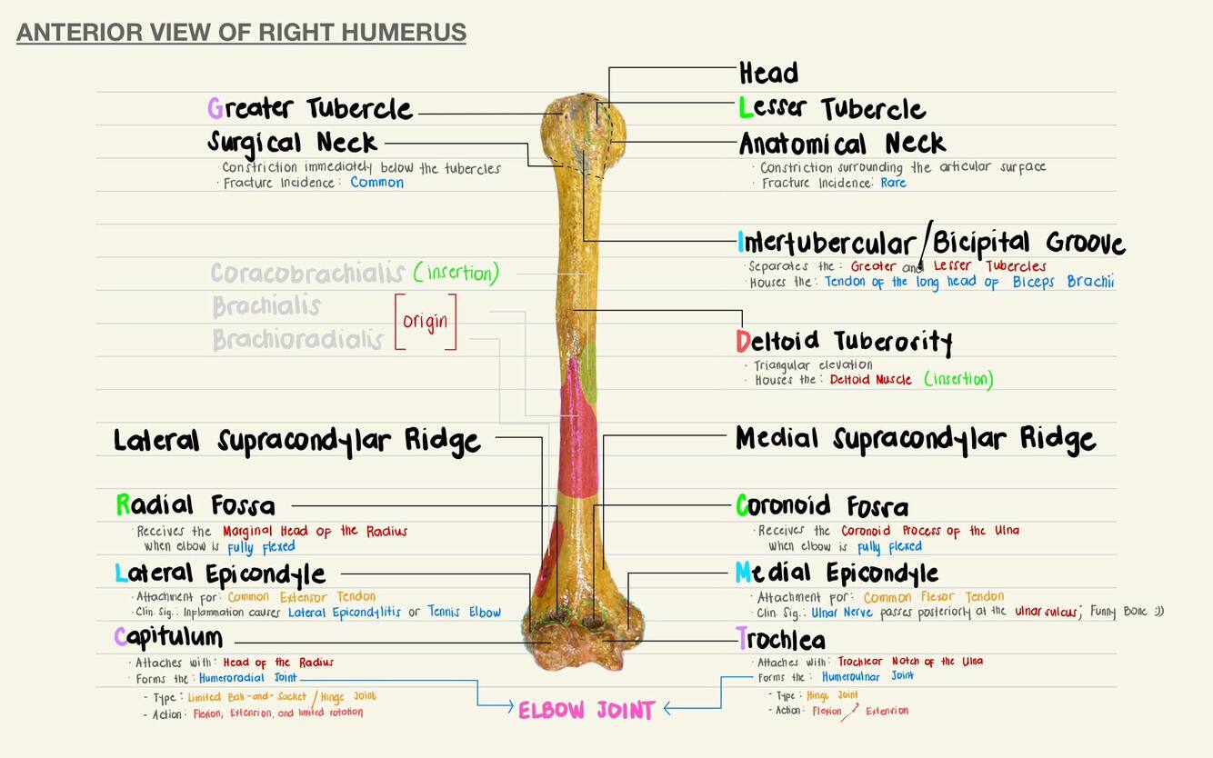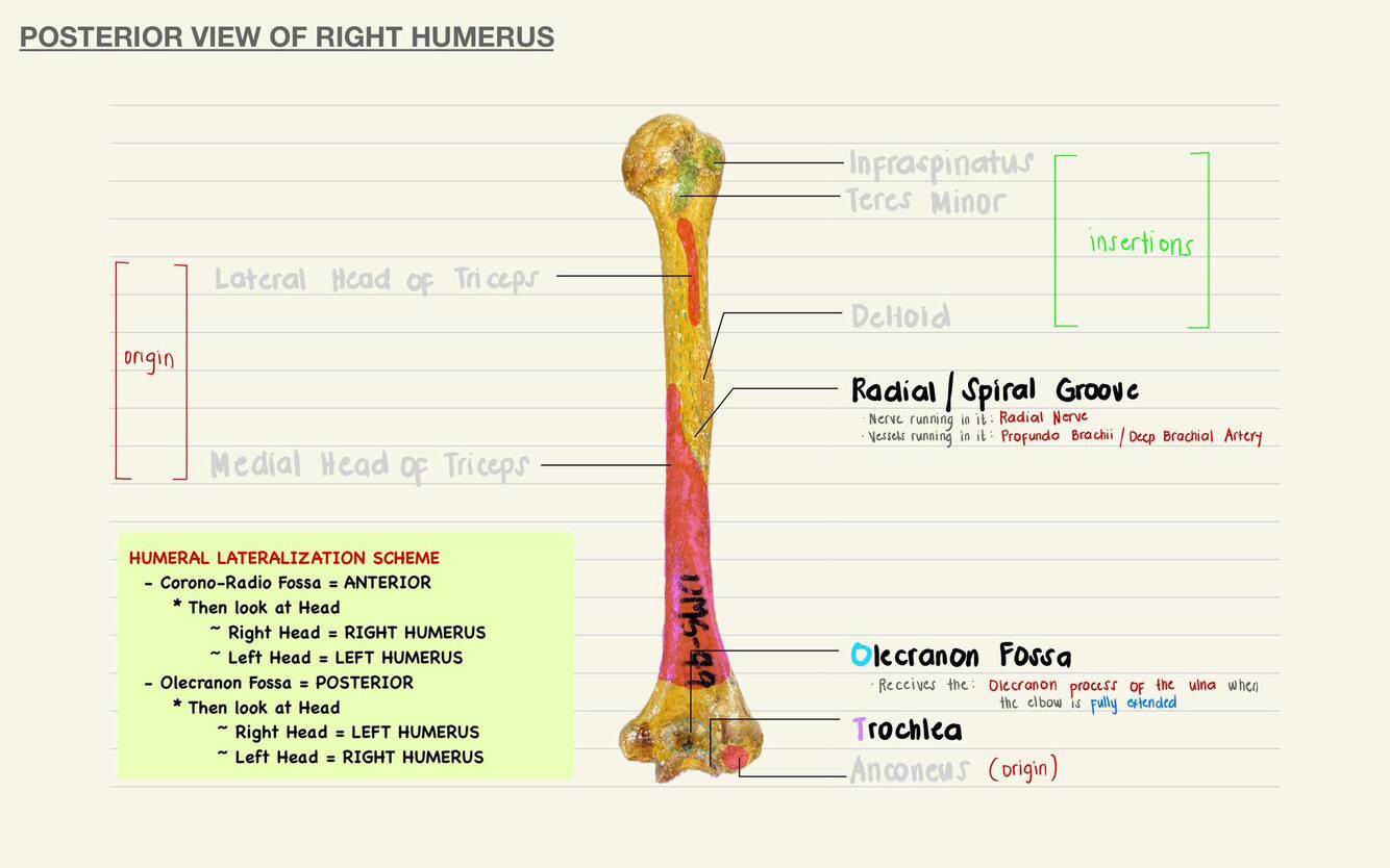 Structures found in the body/shaft of the humerus