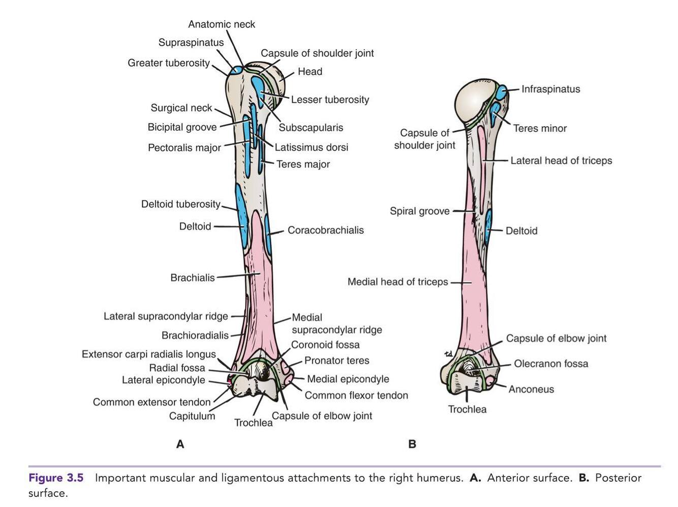 3 main regions of the humerus