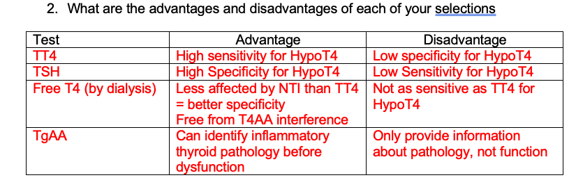 2. The owner requests that you do some tests to rule out hypothyroidism as she knows another horse that is getting thyroid treatment and is now livelier than it was. What test(s) would you recommend to rule out or confirm hypothyroidism in her horse? How are the test results interpreted?