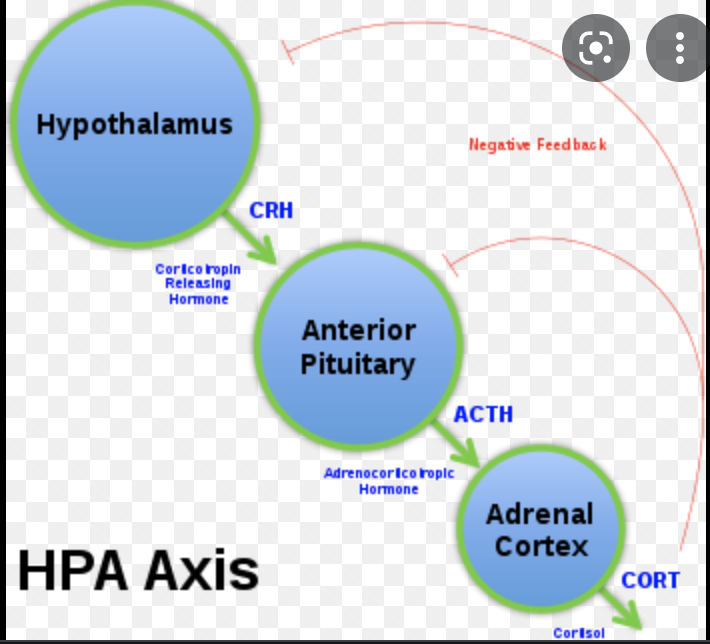 The 3 main components that make up the Hypothalamic-pituitary-adrenal (HPA) axis are the hypothalamus, pituitary gland and adrenal gland. What does the pituitary gland secrete to stimulate the adrenal gland?