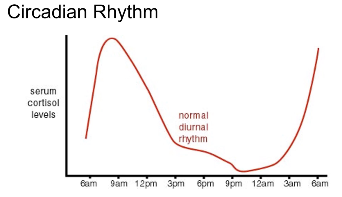 In a patient with a normal circadian rhythm with sleep/wake patterns, cortisol peaks early morning 35-45 minutes after waking and drops in the evening. When assessing a patients adrenal function at baseline, what is an important question to ask the patient and taking into account?